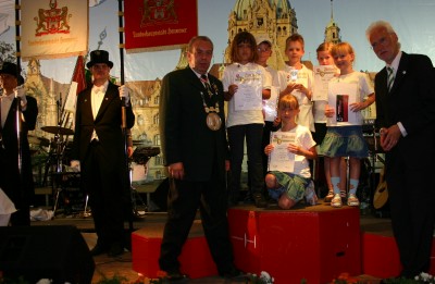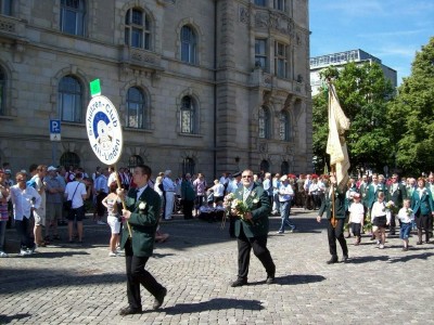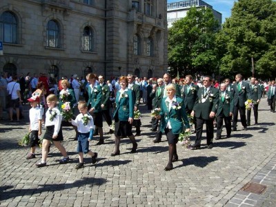 Danach folgte der Marsch zum Lindener Markt, dem Treffpunkt der Lindener Vereine, die wieder gemeinsam zum Rathaus marschierten. Der Hauptmarsch war durchaus sonnenreich zu nennen. Doch Spaß gemacht hat es wieder allen und so konnten wir nach einem frohen Gruß zur Tribüne in der Bruchmeisterallee auf dem Festplatz einbiegen, wo uns kühle Getränke, ein gemütlicher Schattenplatz und ein vorzügliches Mittagessen erwarteten. Unser zweiter Vorsitzender, Wolfgang Engel, hatte sich gut um uns gekümmert. Dafür wollen wir ihm auch an dieser Stelle danken.